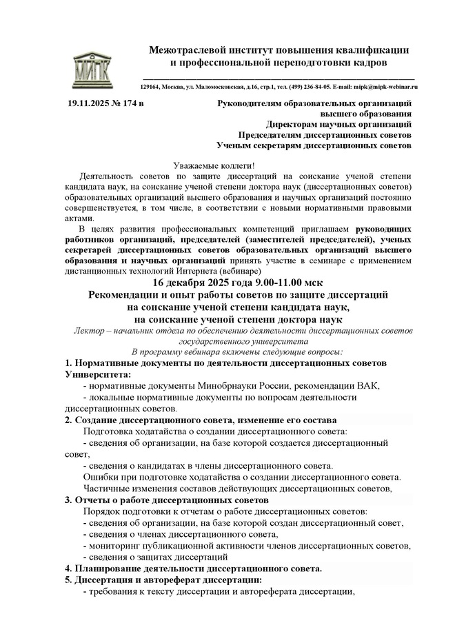 Главная > Вебинары > Рекомендации и опыт работы советов по защите диссертаций на соискание ученой степени кандидата наук, на соискание ученой степени доктора наук / вебинар 16 декабря 2025 г.